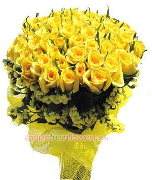 Really bright & so cheerful - Bunch of 100 Yellow Roses ! Send this bright color of bunch now and light up your dear ones' face with all joy.
