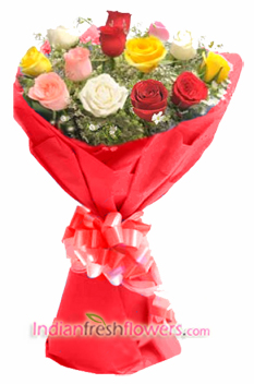 Simply Create magic with 15 mix color roses posy bunch, sure to caste a magic spell on your dear ones and loved ones.